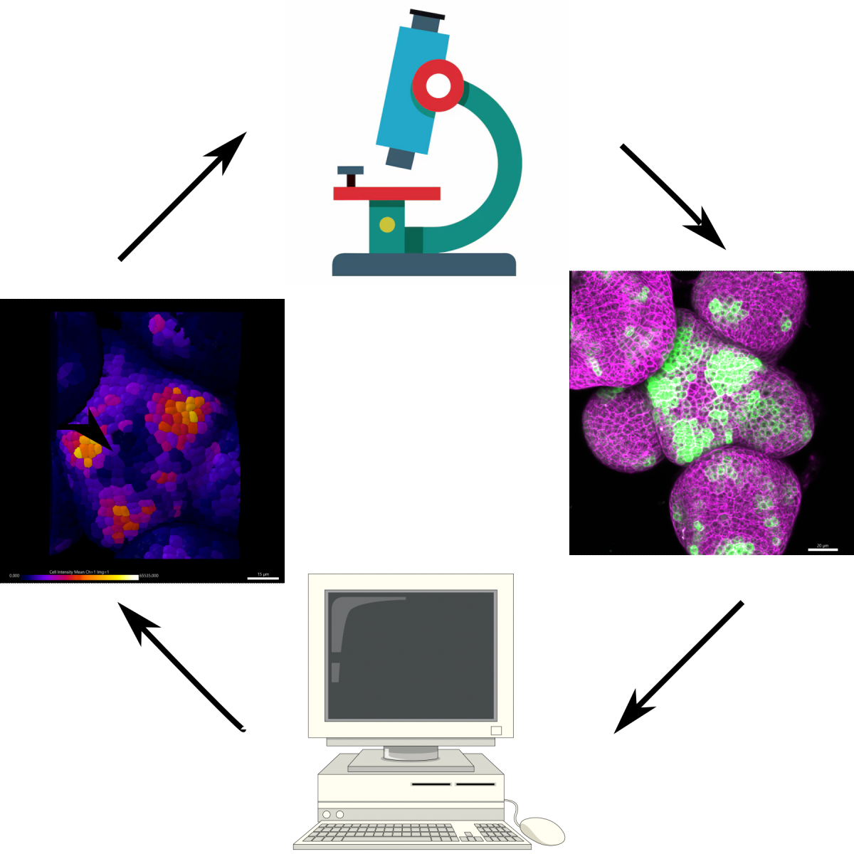 Plant shape and form are determined by the coordination of cell division rates, gene expression patterns, and cell wall properties. Arabidopsis thaliana has served as the model plant to study and elucidate the biological processes that govern plant development. Live-imaging of cell dynamics such as gene-expression patterns, hormonal regulation, and response to cell-autonomous and non-cell autonomous signaling dynamics have been essential tools for understanding plant development. In this course we will use live-imaging and methods to perturb developmental processes in a spatio-temporal manner to quantify changes in aspects of patterning, growth, and morphogenesis at the Arabidopsis shoot apical meristem, the above ground stem cell niche.